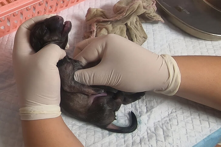 疲労の極みにあるはずのローラが、蘇生中の子犬にそっと鼻を押し付けました。まるで「ママはここにいるわ。帰ってきて」と語りかけているかのように、彼女は問題に気づいていたのです。